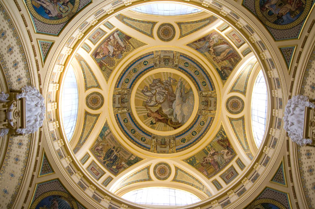 Breathtaking fresco adorns the cielings of the interior portion of the Széchenyi Baths. photo: danny fowler